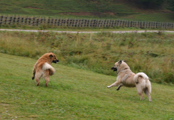 Djamina und Damino beim Herumtoben unter Geschwistern.