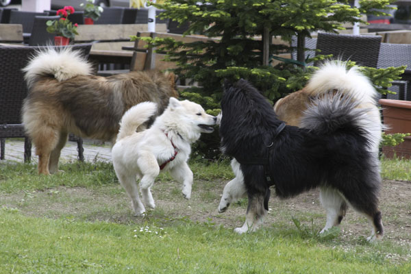 die Junghunde (4 bis 8 Monate) lernen sich kennen